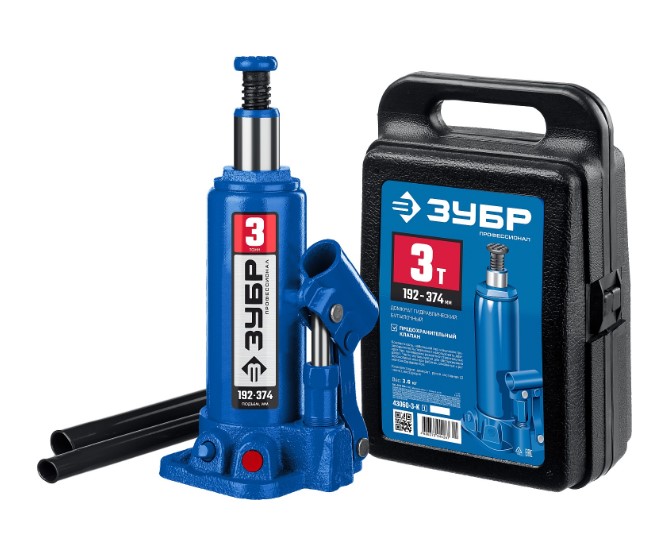 Домкрат гидравлический бутылочный ЗУБР 43060-3-K_z01, предназначен для поднятия грузовДомкрат располагается при подъеме/опускании под грузом, исключая необходимость использования вспомогательных сооружений, канатов или цепей и т.п.
