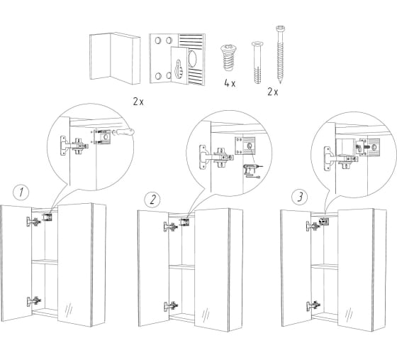 Серия изготовлена из ЛДСП и ЛМДФ, покрытого пленкой ПВХ. Петли оснащены доводчиками для бесшумного использования.