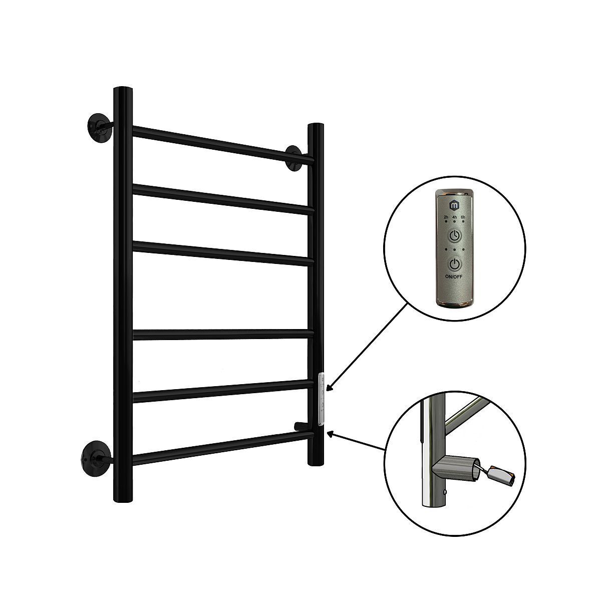Полотенцесушитель В10 Р60*50 (СНШ, Черный RAL 9005 (мат), 2 группы 3*3 вставок , Под скрытый монтаж. С таймером, Ferrum; Правое подкл.)