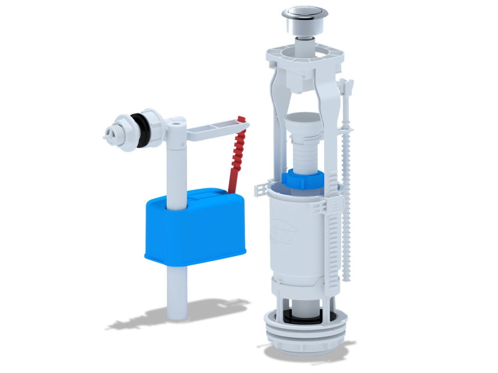 Набор для бачка унитаза. Наливной механизм с боковой подводкой и пластиковой резьбой диаметром 1/2. Сливной механизм метализированная кнопка с одним режимом слива экономГабаритные размеры 231*135*51 наливная, 330*105*100 сливная