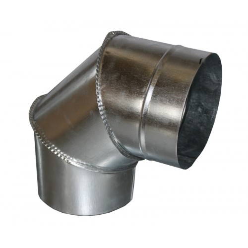 Отводы изготавливаются из цилиндрических секций, соединенных шовной сваркой.Это необходимо для увеличения, согласно нормативам, радиуса поворота дымохода до значения диаметра дымовой трубы.