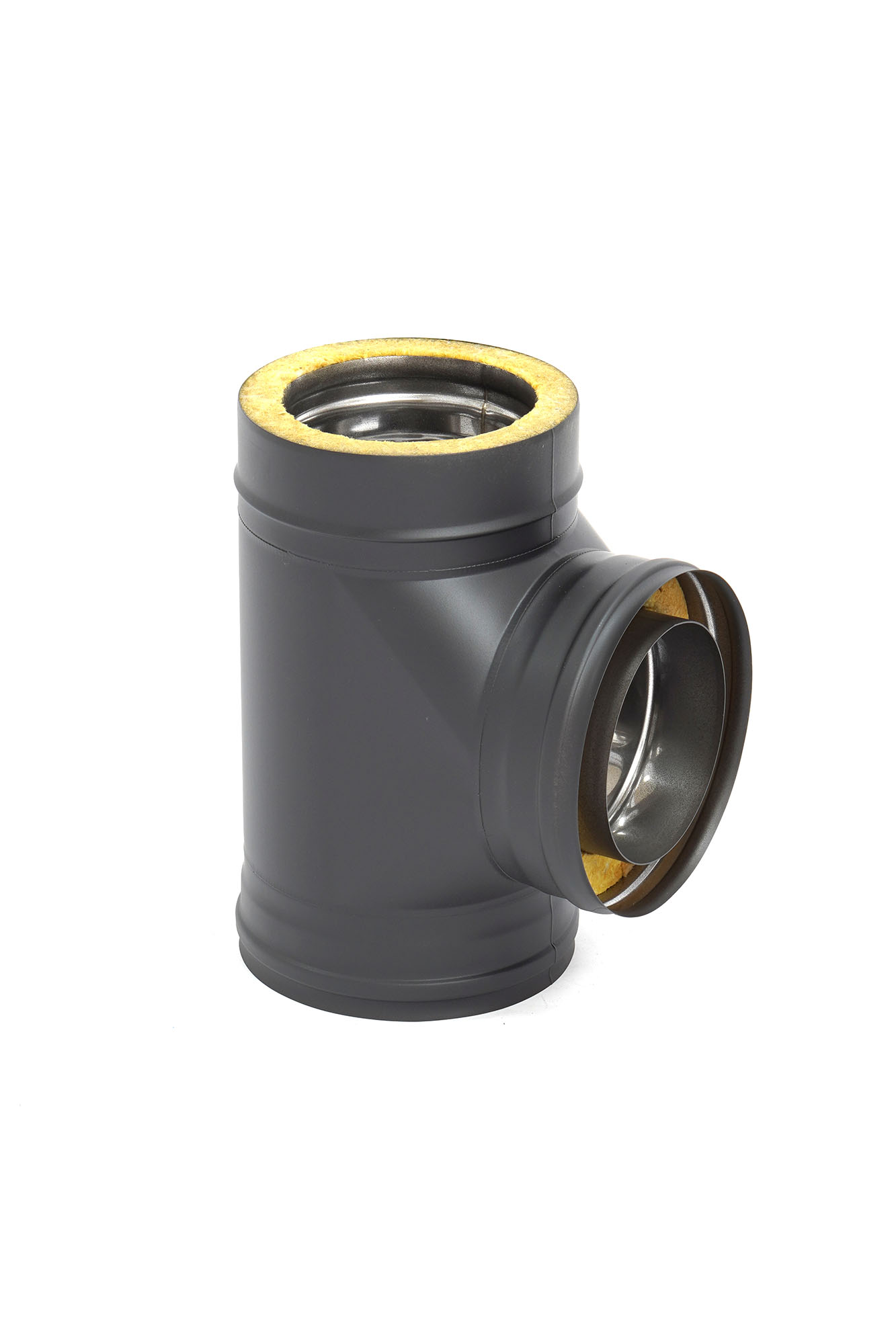 Тройник сэндвич 87 d 150 х 210 толщ. 0,8 нерж (430) х 0,5 нерж (430) черный (RAL 9005) порошок (200С)
