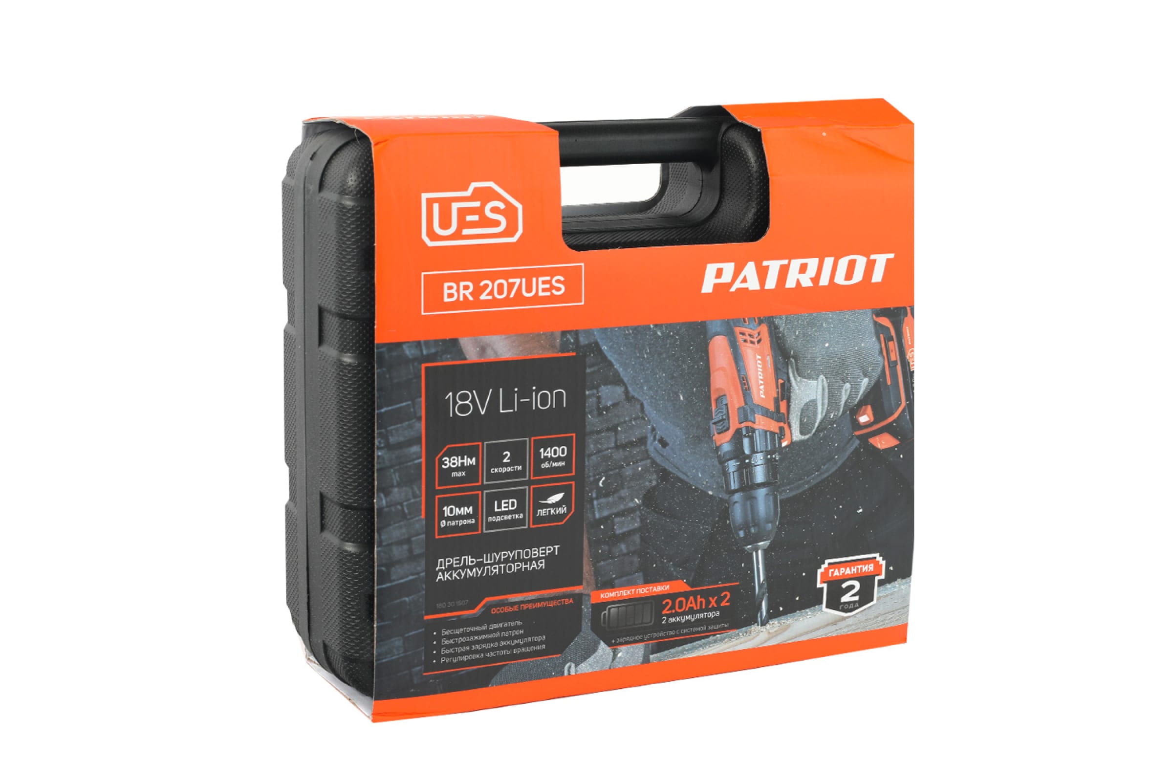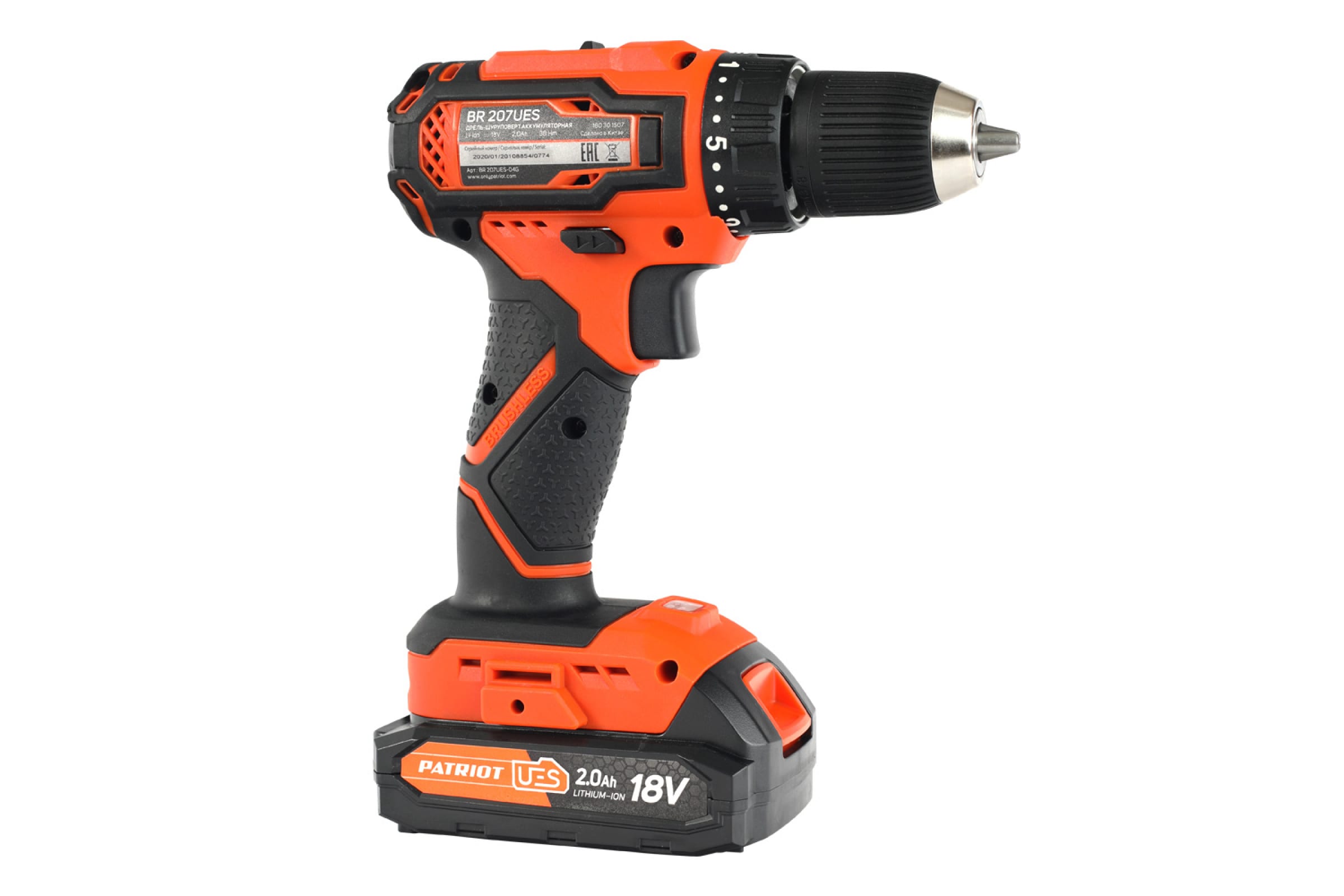 Дрель-шуруповерт аккумуляторная BR 207UES (18В, бесщеточный двигатель, 2,0Ач; 38Нм) PATRIOT