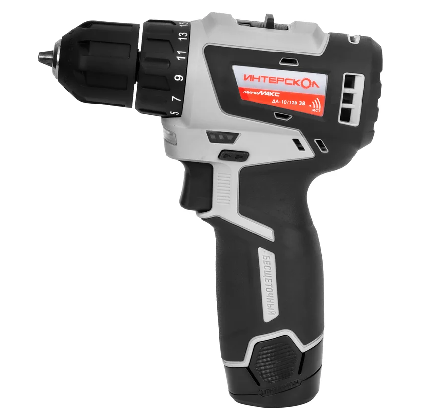 Дрель-шуруповерт аккумуляторная ДА-10/12В (Li-ion, кейс, 2АКБ, 2,5Ач, бесщет.) ИНТЕРСКОЛ
