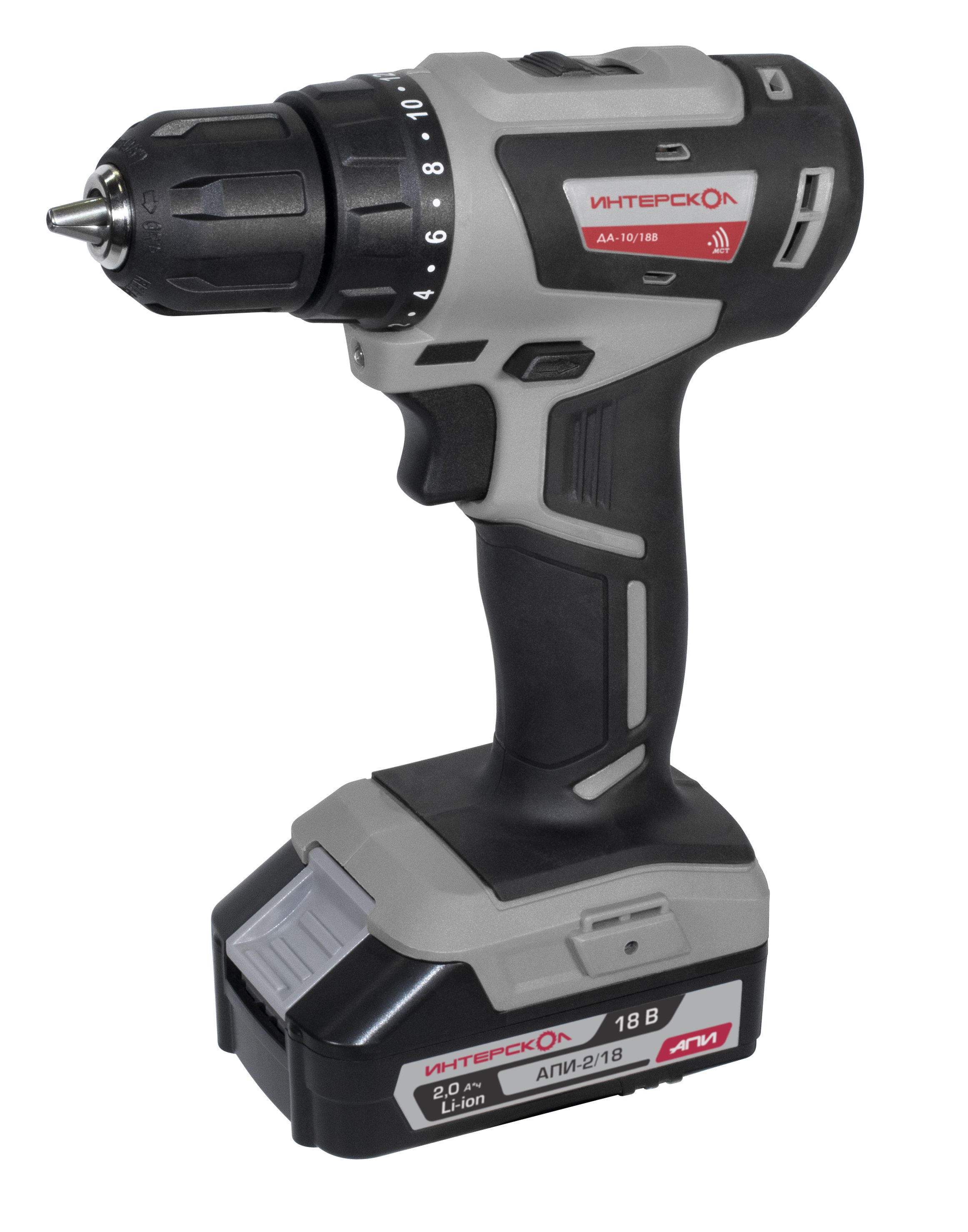 Дрель-шуруповерт аккумуляторная ДА-10/18В (Li-ion АПИ, кейс, 2АКБ 2Ач, ЗУ, бесщеточ.) ИНТЕРСКОЛ