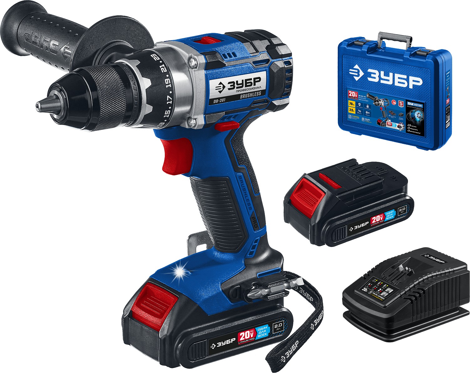 Дрель-шуруповерт аккумуляторная DB-201-22 (20В, 2 АКБ, 2 Ач, бесщеточная, кейс) ЗУБР