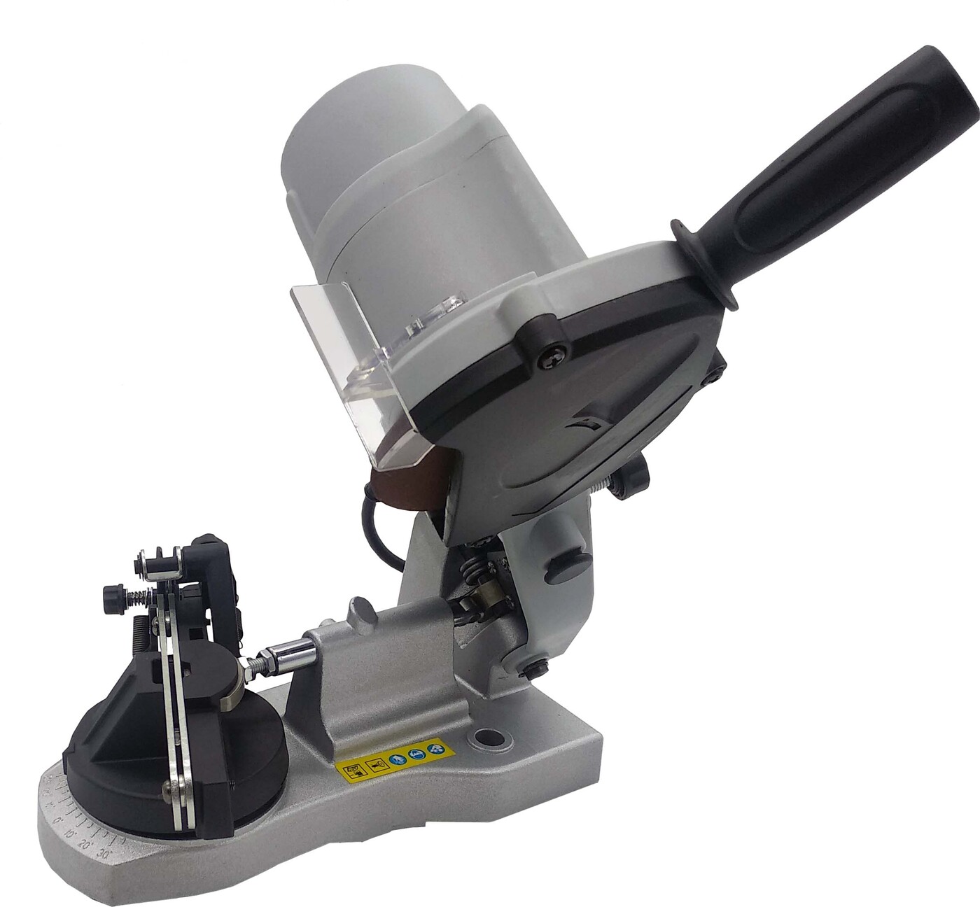 Электрический станок для заточки цепей мощностью 100 Вт с возможностью регулировки угла обеспечит подготовку и поддержание цепной пилы в рабочем состоянии. Электрический станок позволит быстро заточить зубья бензо- или электропилы путем обработки заточным кругом диаметром 104 мм, входящим в стандартную комплектацию устройства. Размер посадочного отверстия составляет 22,3 мм.Прибор подходит для затачивания пил с разным шагом цепи, для изменения параметров следует выполнить настройку путем вращения установочного винта. На основание станка нанесена шкала, с помощью которой можно отрегулировать угол заточки. Модель оснащена автоматической затяжкой цепи, эта функция упрощает процесс работы и позволяет сократить время обработки.