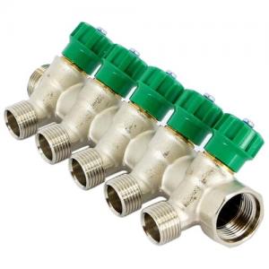 Коллектор с регулировочными вентилями на 5 выходов 1 дюйм х 3/4 Евроконус TIM
