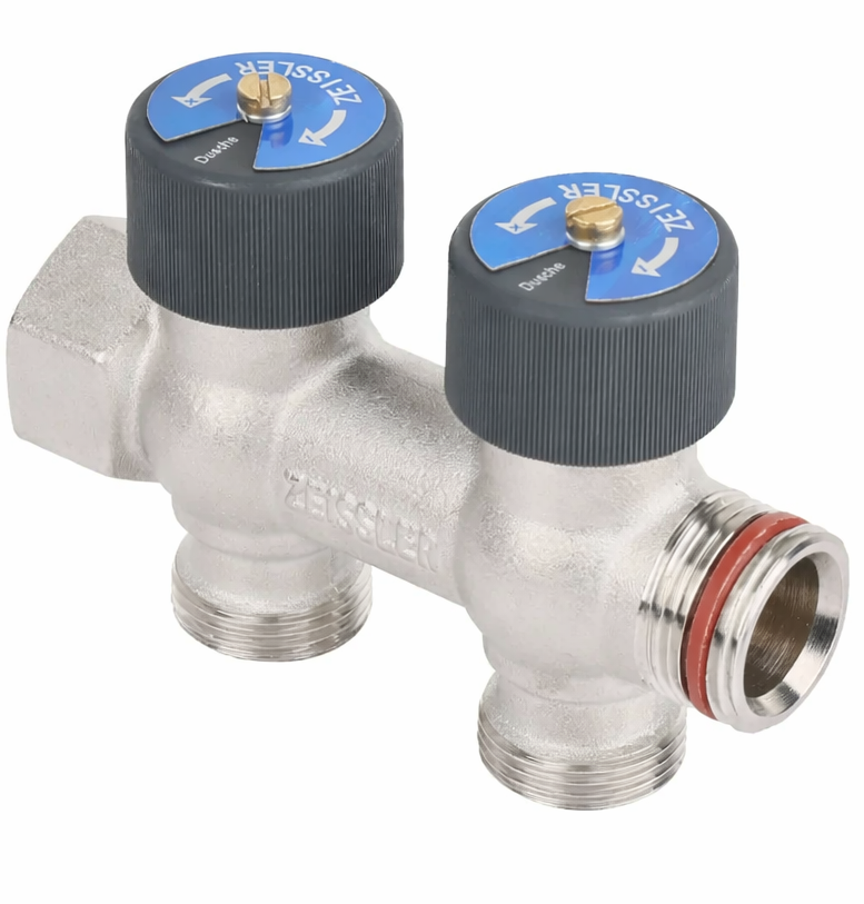 Коллектор распределительный с плавной регулировкой никелированный 2 вых. 3/4 х 3/4 Евроконус ZEISSLERРаспределительный коллектор ZEISSLER предназначен для систем холодного и горячего водоснабжения и соответствует европейским требованиям к компонентам питьевых водопроводов. Подходит для применения как в частных домах, так и в многоквартирных зданиях.