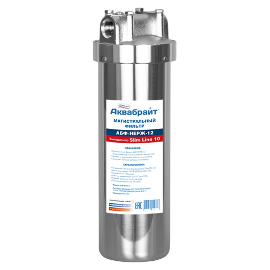 Магистральный фильтр АКВАБРАЙТ модель АБФ-НЕРЖ-12 изготовлен из НЕРЖАВЕЮЩЕЙ СТАЛИ.Назначение: