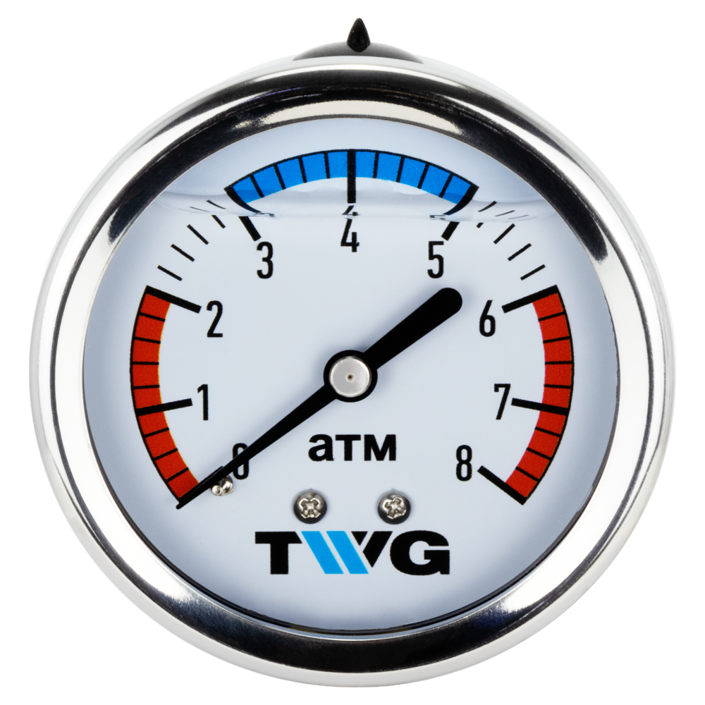 Манометр гидрозаполненный 0-8 атм, подкл. сзади 1/4", корпус нерж. ? 63 мм
