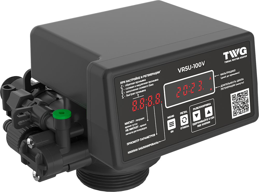Коттеджная система очистки воды TWG 1252-VR5D-100VB предназначена исключительно для частного использования в целях очистки (доочистки) воды из допущенных к использованию подземных и централизованных источников водоснабжения для бытовых и технических нужд в автоматическом режиме.Производительность номинальная, м3/ч (не более) Qном - экобрайт комплекс 1,5 / экобрайт умягчение 1,8