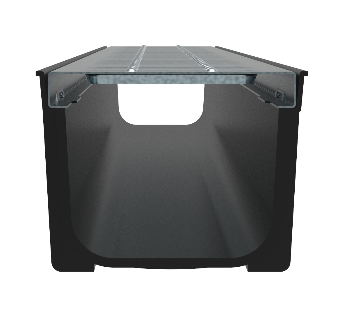 Поставляется в сборе с стальной решеткой. Это самая экономичная серия пластиковых водоотводных лотков. Не требуют специальных фиксаторов решетки и дополнительных соеденительных элементов для подключения канализационных труб, в лотках уже предусмотренны патрубки для их подключения."