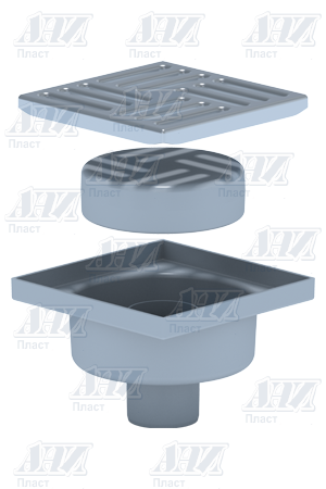 Трап с сухим затвором.Трап не регулируемый с вертикальным выпуском, с гидрозатвором предназначен для отвода воды с поверхности пола в систему канализации.