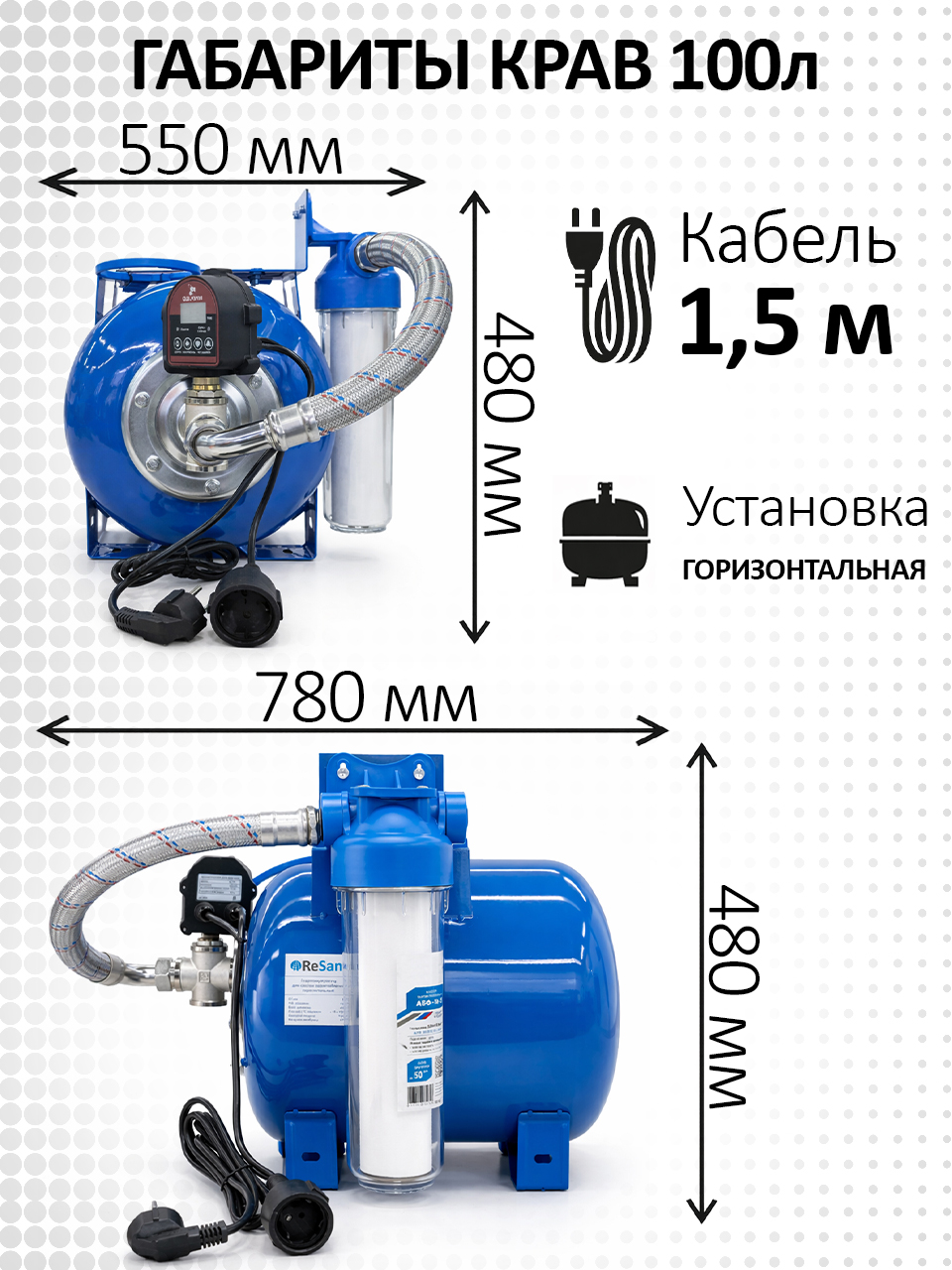 Комплексное решение автоматизации водоснабжения (КРАВ) — это готовый к установке узел для автоматического управления насосом и защиты системы водоснабжения в частном доме, на даче или хозяйственных объектах.Гидроаккумулятор в сборе с автоматикой КРАВ 100 л объединяет электронное реле давления РДЭ, гидробак и защитные элементы в одном корпусе, обеспечивая стабильное давление воды и надёжную работу насосного оборудования.