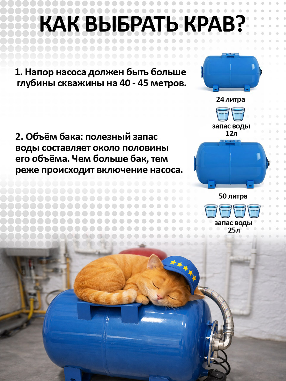 Гидроаккумулятор с автоматикой КРАВ 100 л подходит для скважинных и поверхностных насосов и позволяет быстро реализовать надёжную систему автоматизации водоснабжения «под ключ».