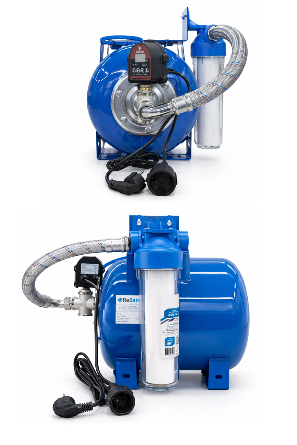Встроенный фильтр предварительной очистки защищает насос и автоматику от механических примесей, а гидроаккумулятор снижает частоту включений насоса и повышает комфорт эксплуатации системы водоснабжения.