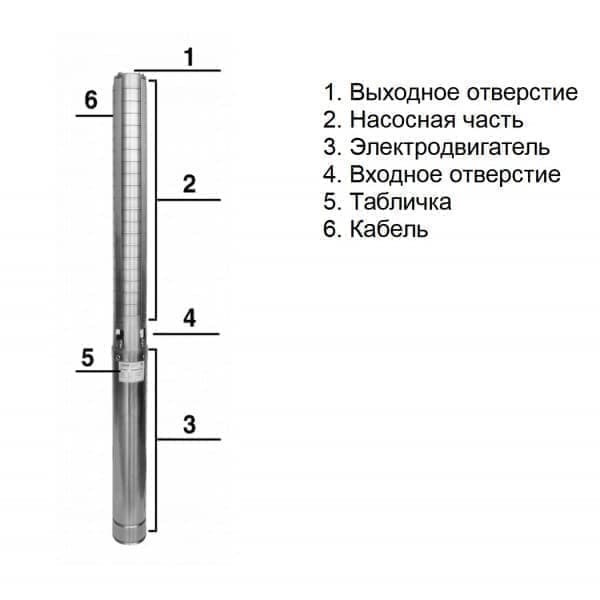 ? Корпус скважинного насоса выполнен из нержавеющей стали, что обеспечивает долговечность и надежность работы устройства.