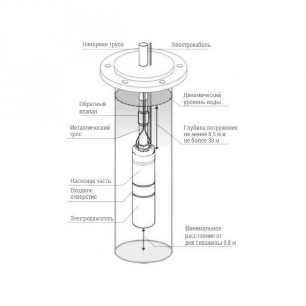 ? Корпус скважинного насоса выполнен из нержавеющей стали, что обеспечивает долговечность и надежность работы устройства.