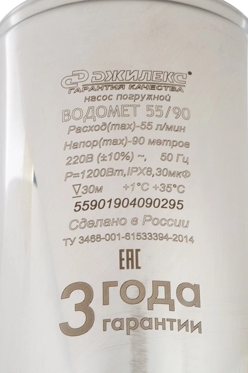 Насос скважинный погружной центробежный ВОДОМЕТ 55/90 (98 мм, 220В, 1200Вт, 55 л/мин, 90м) кабель 50 м. ДЖИЛЕКС