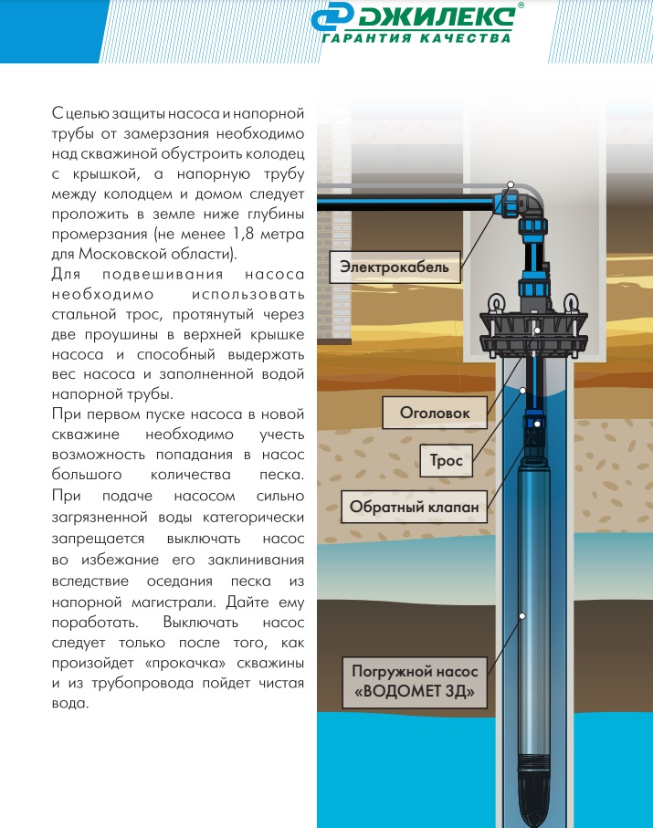 ? Скважинный насос обладает высокой износостойкостью и способен перекачивать воду с твердыми частицами размером до 2 мм в диаметре, включая воду с большим содержанием песка (до 2 кг песка на кубический метр воды).