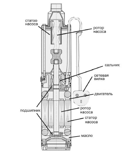 ? Корпус скважинного насоса выполнен из нержавеющей стали, что обеспечивает долговечность и надежность работы устройства.