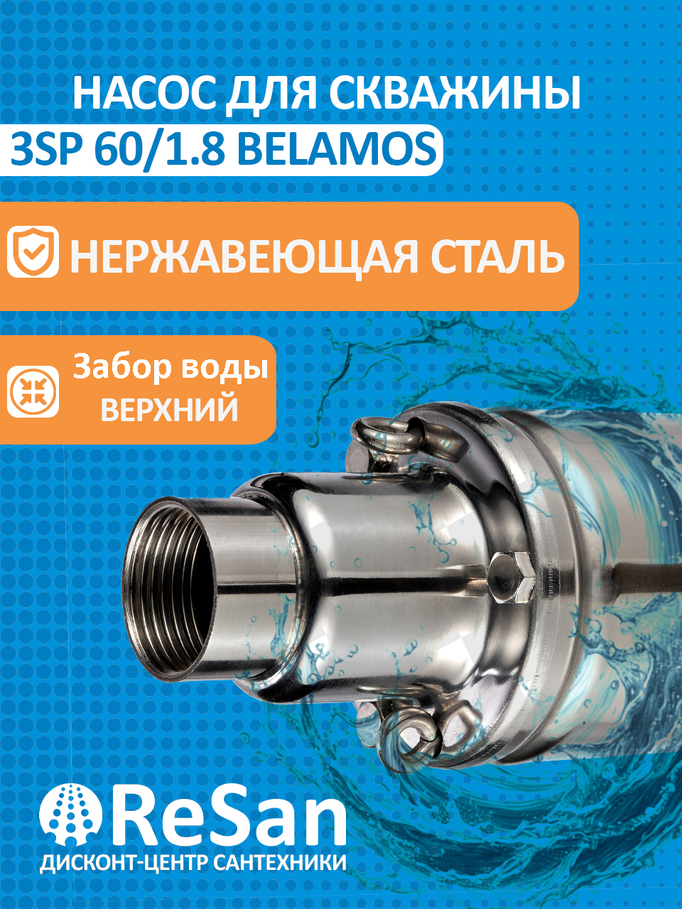 ? Скважинный погружной насос Belamos 3SP 60/1.8 разработан для высокоэффективной подачи чистой воды с большой глубины в жилищные объекты и для орошения сада. Устанавливается прямо в пробуренные скважины диаметром от 80 мм и применяется в автоматических системах водоснабжения дач, частных домов, коттеджей и других построек, не имеющих возможности подключения к центральной системе водоснабжения.? Электродвигатель однофазного типа находится в масляной ванне для лучшего охлаждения и защиты от воды. Обладает защитой от проникновения воды при погружении на глубину до 30 метров от зеркала воды. А термозащита с принудительной активацией исключает возможность повреждения двигателя в аварийных ситуациях, обеспечивая безопасность и долговечность работы скважинного насоса Belamos.
