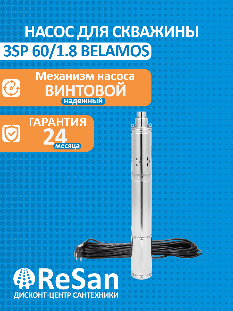 Насос скважинный погружной винтовой 3SP 60/1.8 (3", 220В, 600Вт, 1800л/ч, 60м) кабель 15 м. (до 15м) BELAMOS
