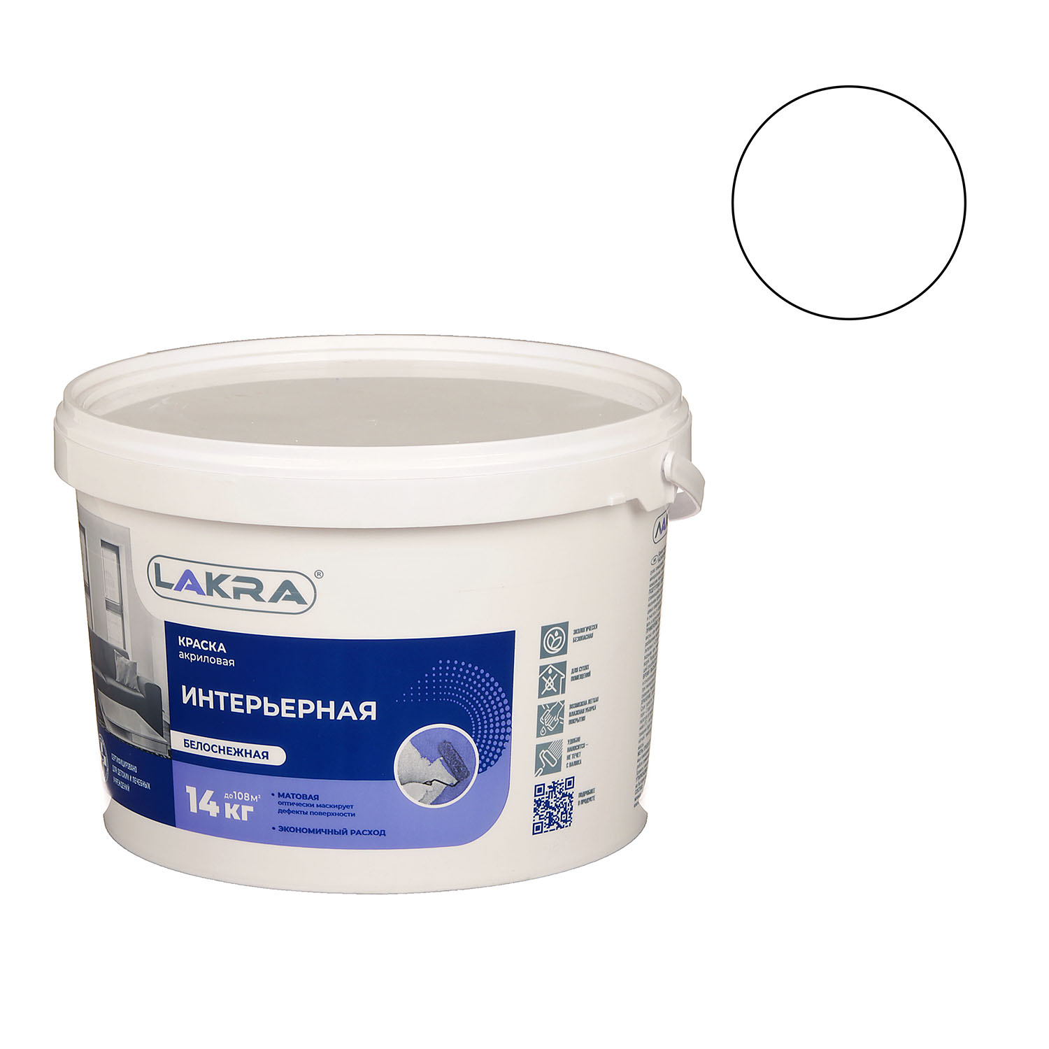 Краска акриловая интерьерная белоснежная матовая 14 кг LAKRA