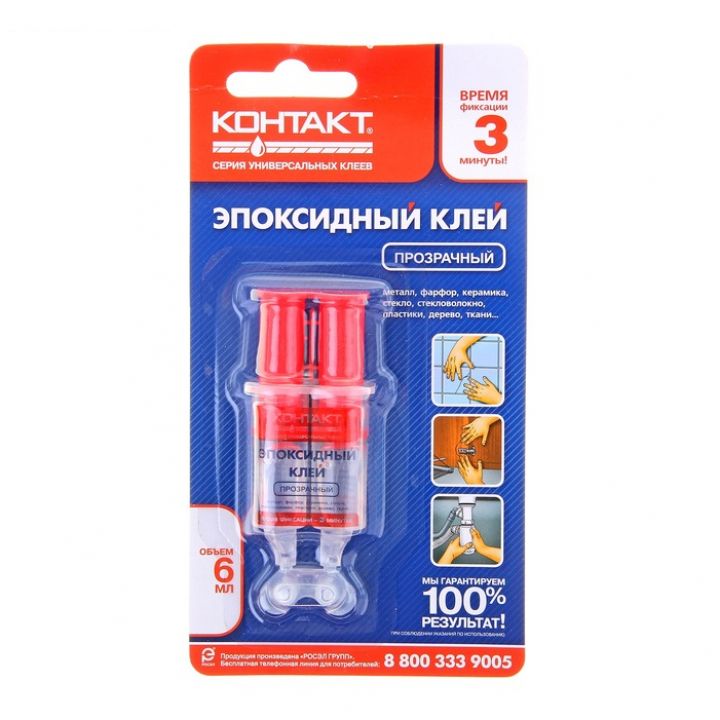 Двухкомпонентный прозрачный эпокси. клей – Клеевой шов прочный, твердый, объемный – Клеит многие материалы и сложные пластики – Заполняет пустоты, восстанавливает форму и объем; Масло- бензо- водостойкий – Состав: Эпокс. смола, отвердитель, добавки – Фиксация 3 мин; Отверждение 72 ч – Диапазон температур: от -30 до +150?С – Упаковка удобна для дозировкиОтзывы