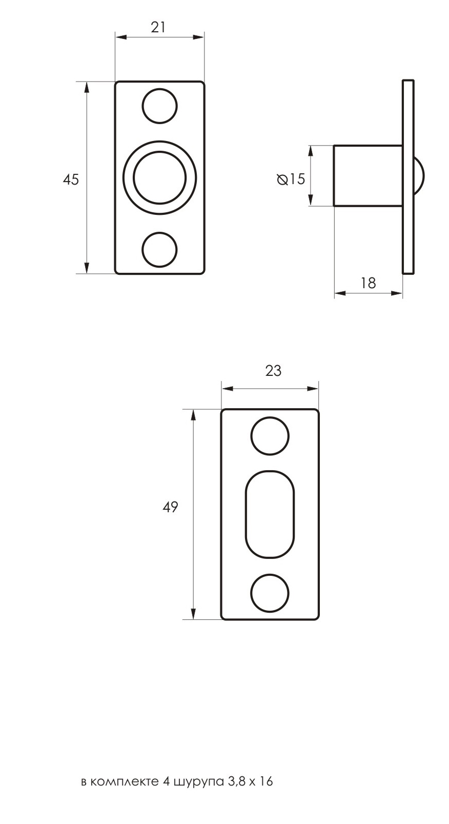 Фиксатор дверной Soller с шариком предназначен для лёгких межкомнатных дверей. Простейший механизм на деревянную дверь для удержания её в захлопнутом положении в проёме, при этом для работы фиксатора нет необходимости устанавливать ручку с нажимным механизмом. Наиболее практичный вариант для использования на дверях с большой проходимостью.Характеристики