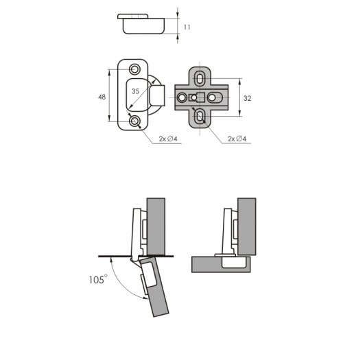 Металлический механизм, позволяющий закрывать и открывать мебельные фасады. Конструкция состоит из чаши, плеча и планки.Отзывы