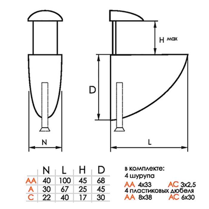 Позволяет удерживать полку, а также важный элемент крепежной системы, отвечающий за устойчивость полки.Характеристики