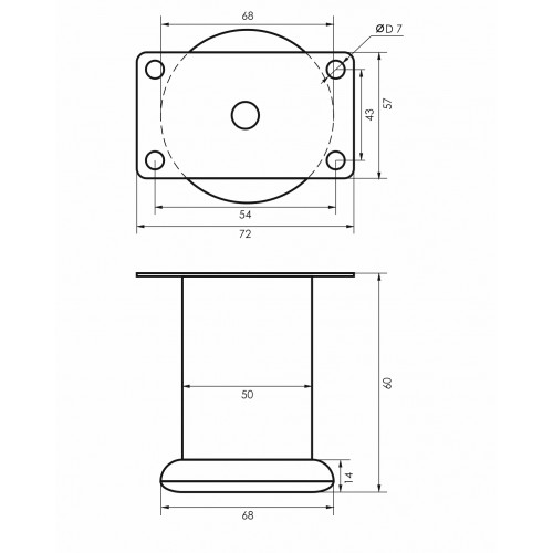 Опора мебельная 50х60мм (В-140) 0,6мм хром