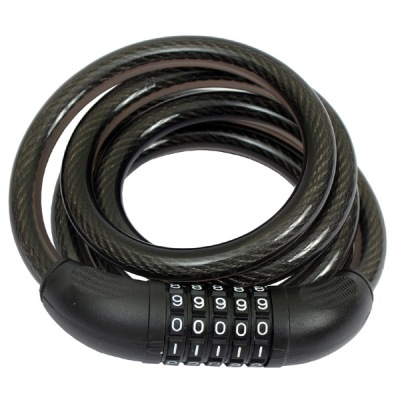 Замок кодовый со стальным тросом. Материал корпуса - сталь покрыта пластиком (12мм - диаметр, 1500мм - длина). Секретность: 5 кодовых ячеек по 10 цифр.Применяется для защиты велосипедов, мотоциклов, колясок; запирания ворот, хозяйственных и бытовых помещений. Первоначально на все замки установлен код 00000. Чтобы изменить код: 1. Откройте замок 2. На кодовой части с торца поверните кольцо в направлении, указанном стрелкой, на четверть оборота, до упора 3. Изменить кодовую комбинацию 4. Верните кольцо в начальное положение, повернув кольцо против часовой стрелки. Новый код установлен. Запомните его. Замки можно перекодировать сколько угодно раз.Отзывы