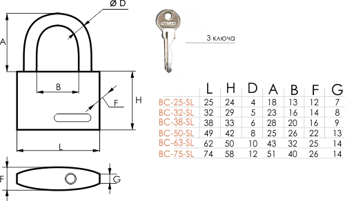 Замок навесной ВС-25-SL (25мм) SOLLER