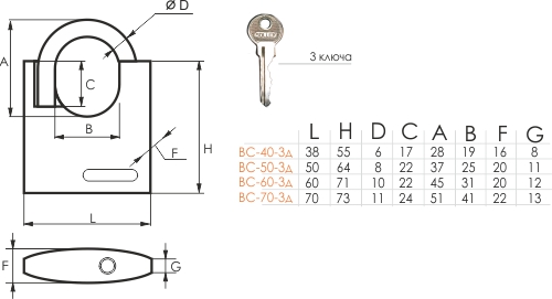 Замок навесной защищённая дужка ВС-60-ЗД (60мм) SOLLER