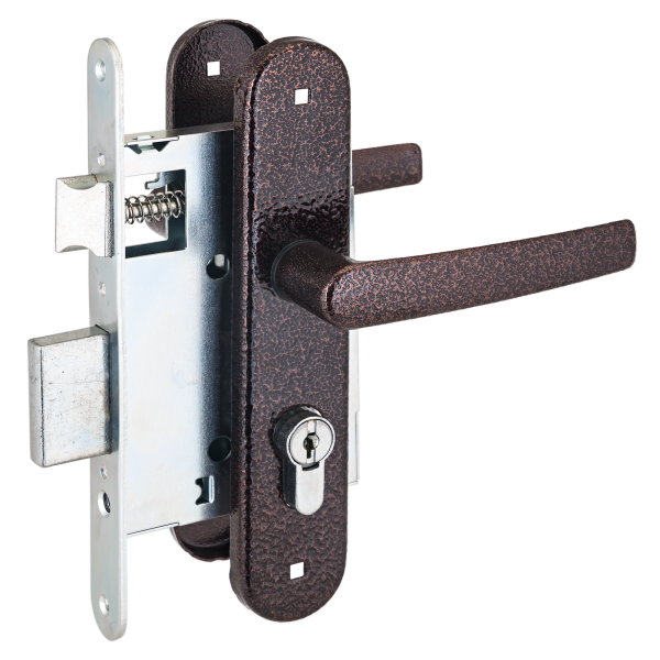 Замок врезной с ручками, цилиндровый. Предназначен для установки в деревянные двери толщиной 40-50мм, правого и левого открывания. Стальной оцинкованный корпус. Прямоугольный ригель из цинкового сплава, вылет 22мм. Межосевое расстояние 55мм. Удаление ключевого отверстия 55мм. Габаритный размер 85х130 мм. Ручки - алюминиевый сплав, покрытие - краска, без пружины, крепление - стяжками. Комплектуется цилиндровым механизмом 70мм с 4 ключами.Отзывы