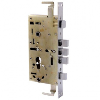 Замок врезной цилиндровый с защелкой и задвижкой, без механизма секрета. Предназначен для установки в правые китайские металлические двери, в качестве основного замка. Замок закрывается снаружи автоматически, поднятием ручки вверх. Три прямоугольных стальных ригеля. Вылет ригелей 20мм. 3 точки запирания. Корпус замка - сталь, толщиной 1,1мм. Удаление ключевого отверстия 60мм. Межосевое расстояние 68мм. Расстояние от центра механизма секрета до задвижки 52мм. Цвет торцевой планки - хром, ширина 24мм.Отзывы
