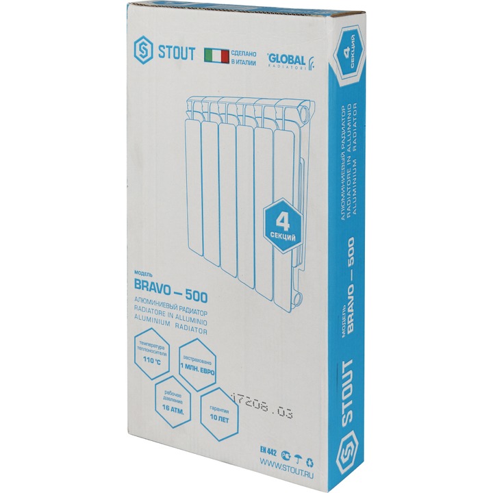 Радиатор алюминиевый STOUT Bravo 500/80/4