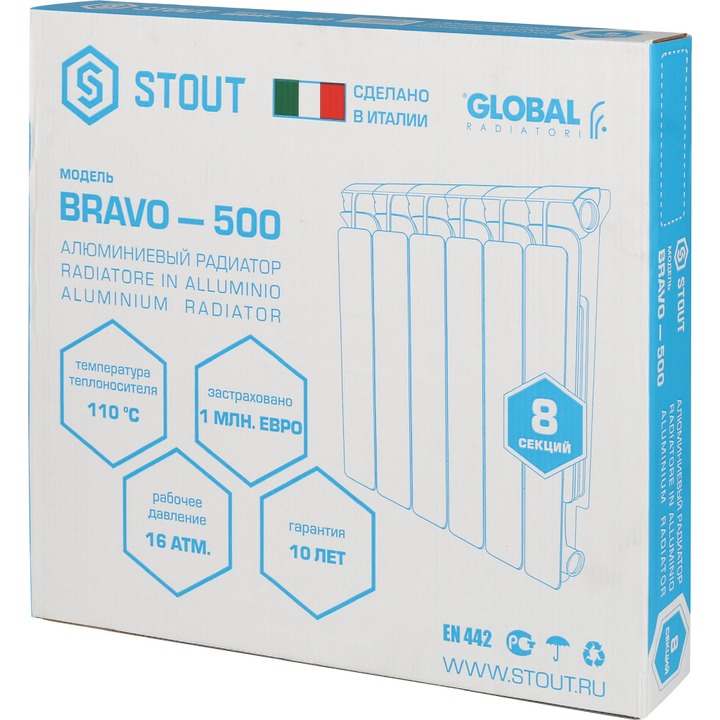 Радиатор алюминиевый STOUT Bravo 500/80/8