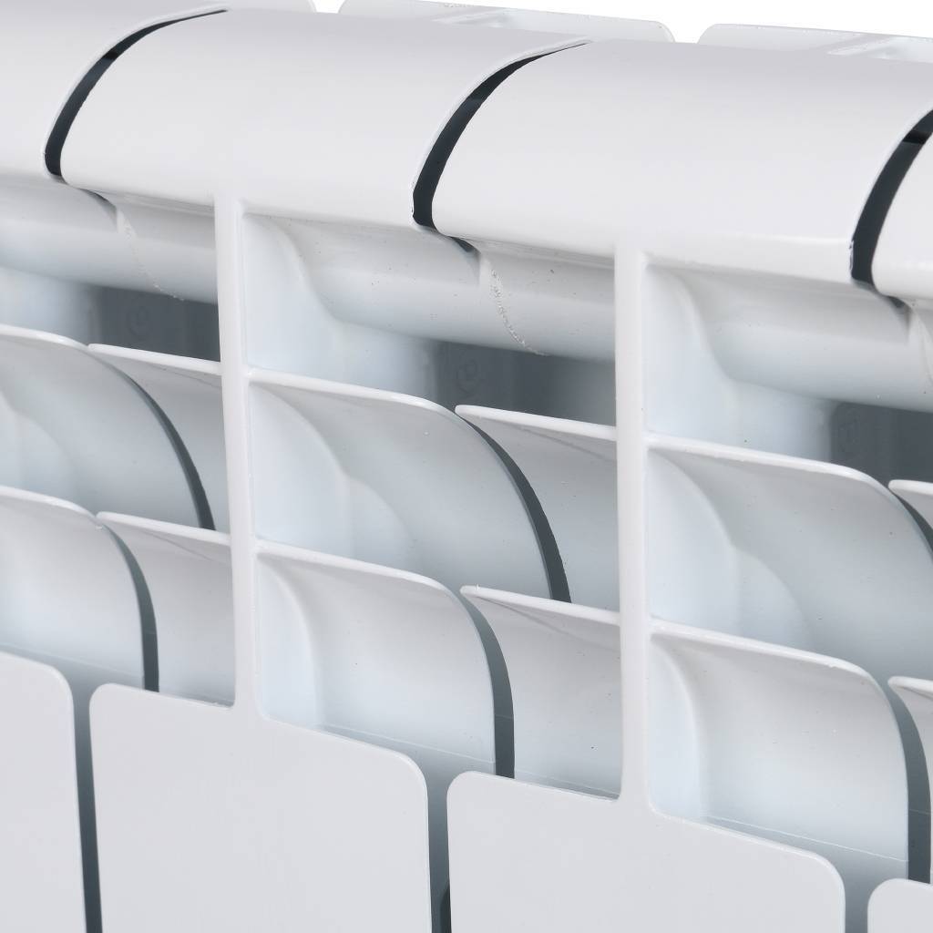 Биметаллические радиаторы повышенной мощности, могут эксплуатироваться как в центральных так и в индивидуальных отопительных системах, в условиях использования агрессивных сред. В качестве хладоносителя допустимо применение воды и незамерзающей жидкости с водородным показателем (pH) от 6,5 до 9. Коллектор биметаллических отопителей, полностью изготовленный из коррозиестойкой стали, является сваренной конструкцией, состоящей из продольных и поперечных трубчатых элементов, которые затем заполняются алюминиевым сплавом под высоким давлением. Этот инновационный подход позволяет создавать изделия с коэффициентом теплопроводности, превышающим величину, характерную для радиаторов, полностью изготовленных из алюминия.