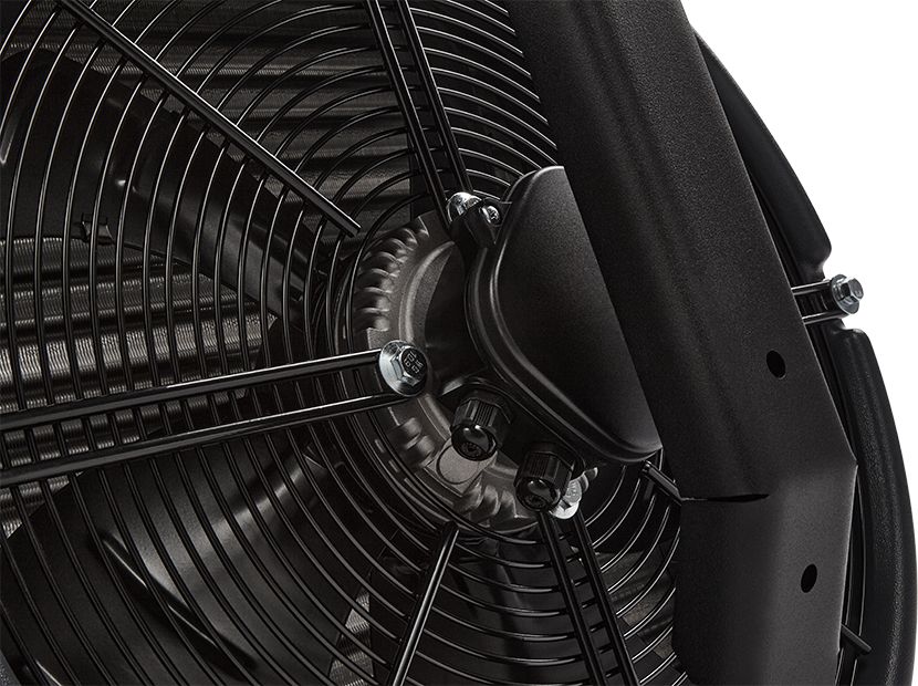 Осевой вентилятор диаметром 450 мм создает воздушный поток длиной 24 метра и обеспечивает максимальную производительность до 4800 м?/ч.