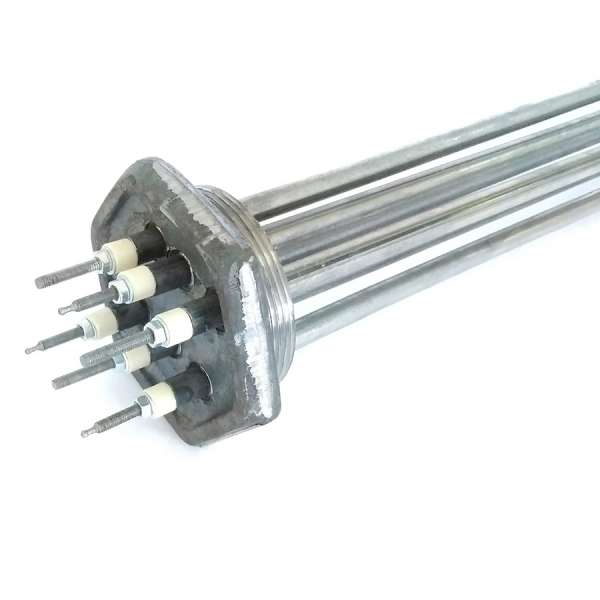 Каждый ТЭНБ-6 кВт представляет собой группу электронагревателей типа ТЭН, смонтированных во фланце с использованием прочного обжатия. Для удобной установки на объекте ТЭНБ — оснащены резьбовым фланцем диаметром G2 1/2 и шестигранным винтом под ключ для надежного крепления.