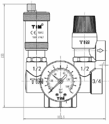 Группа безопасности котла Компакт 1"-3 бар JH1026-3 (с возможностью установки расширительного бака 3/4) TIM
