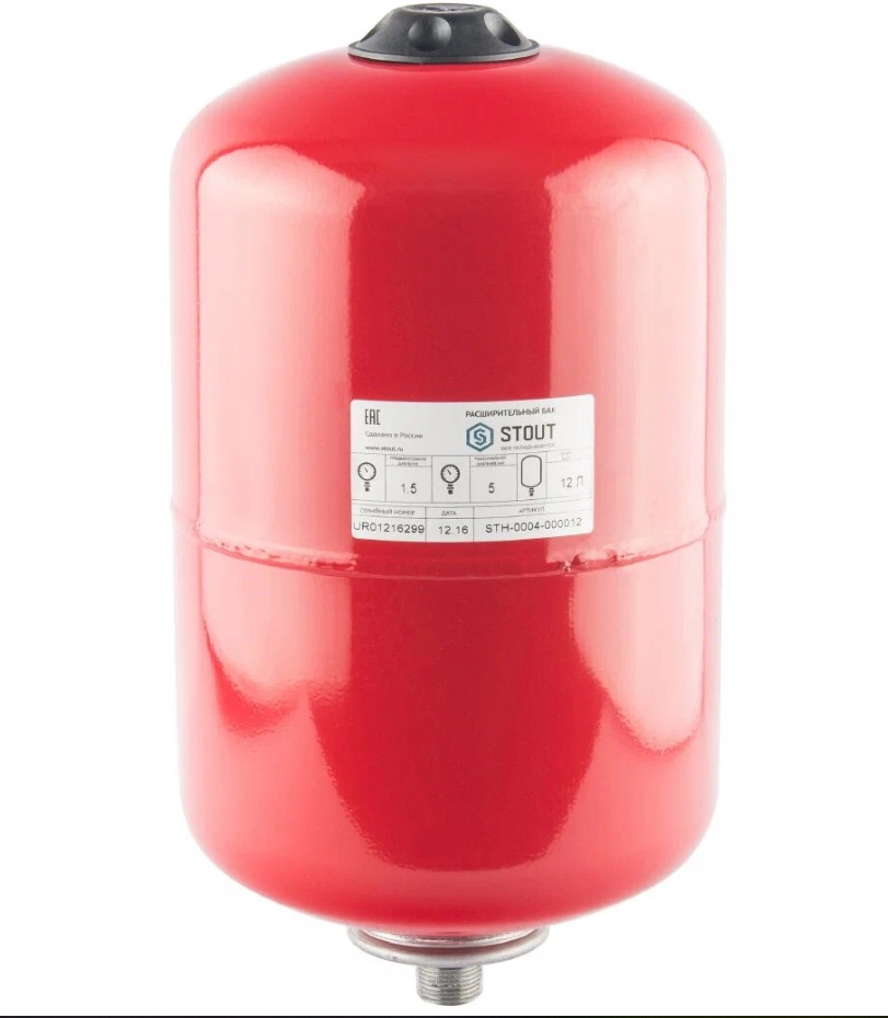 Бак расширительный 12 л красный вертикальный d 3/4", 5 bar STOUT?? Расширительный бак STOUT — это надежное и высококачественное решение для систем отопления, обеспечивающее стабильное давление и защиту от избыточного давления. Он предназначен для работы в закрытых системах отопления, позволяя компенсировать изменения объема воды при нагревании и предотвращая повреждения оборудования. Бак способствует оптимизации работы системы, увеличивая ее эффективность и срок службы.