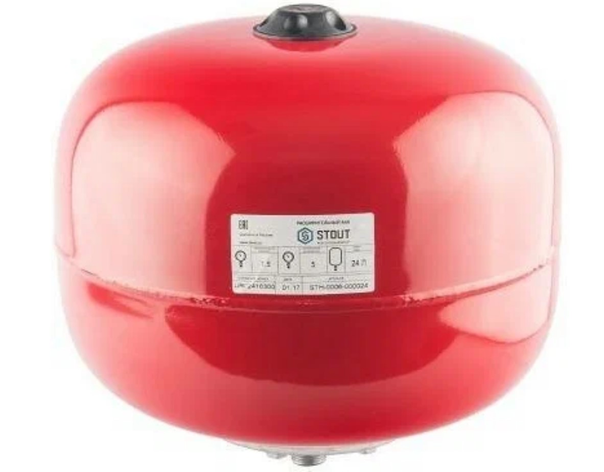 Бак расширительный 24 л красный вертикальный d 3/4", 5 bar STOUT?? Расширительный бак STOUT — это надежное и высококачественное решение для поддержания стабильного давления в системах отопления. Он предназначен для работы в закрытых системах, обеспечивая компенсацию изменений объема воды при нагревании и защищая оборудование от избыточного давления. Бак способствует улучшению работы системы отопления, предотвращая ее перегрузку и увеличивая срок службы всех компонентов.