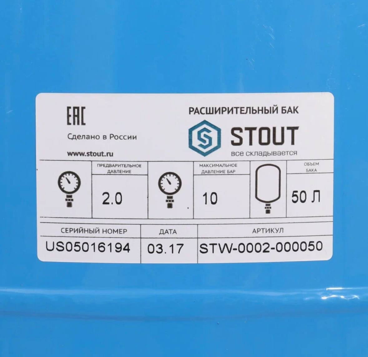 Бак гидропневмобак 50л. синий вертикальный d 1", 10 bar STOUT