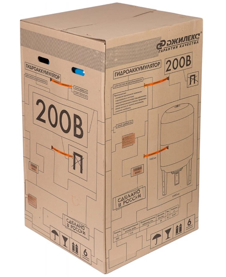 ? В комплект поставки входит: гидропневматический бак объемом 200 л; инструкция по монтажу и эксплуатации.