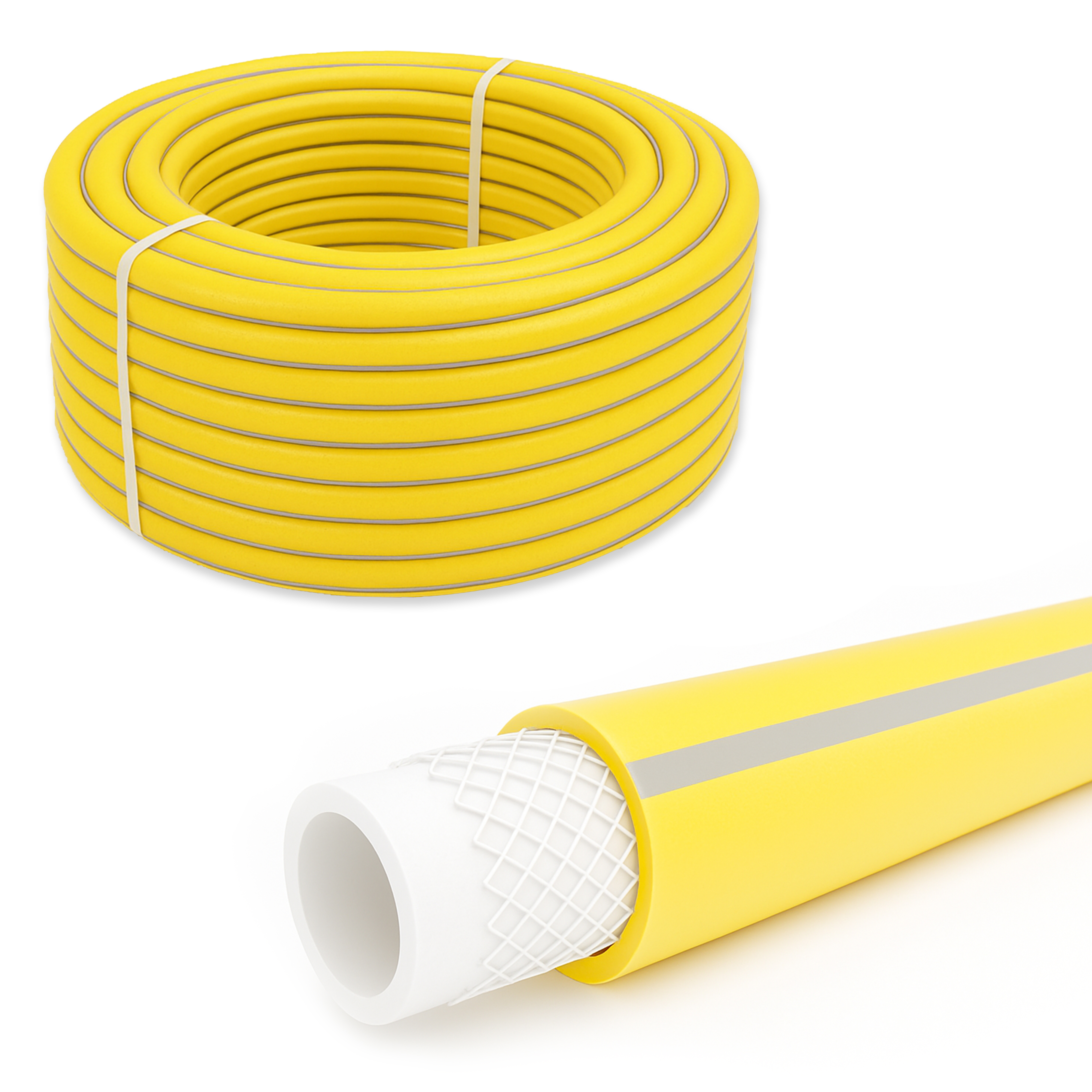 Шланг для полива ТЭП армированный 3-х сл. желтый с серой полосой 1/2" (12х18 мм) х 50 м AQWAVIM